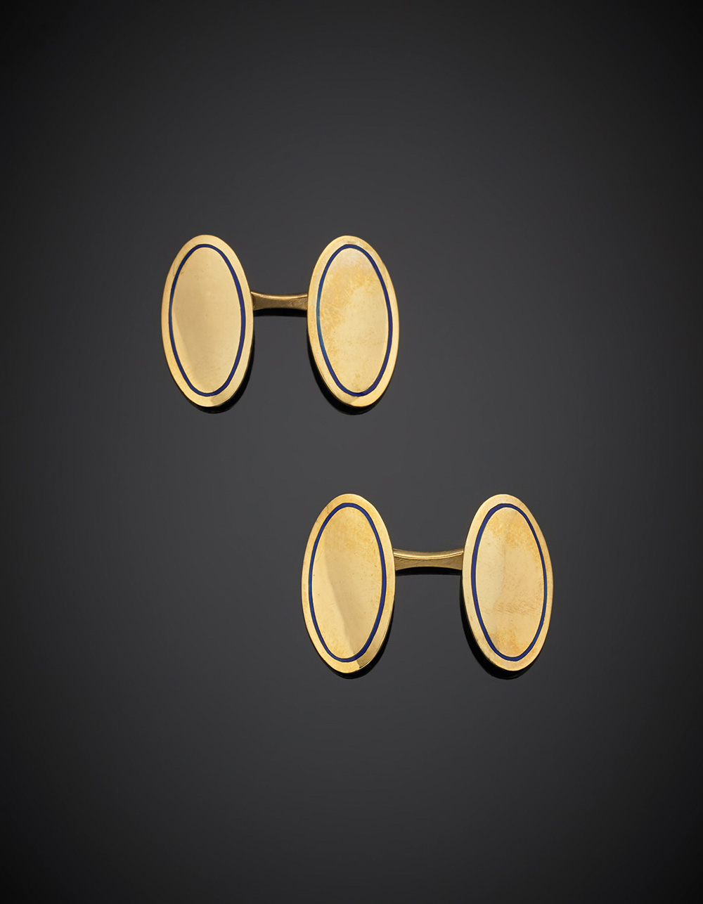 Blue enamel yellow gold oval cufflinks g 10.80.