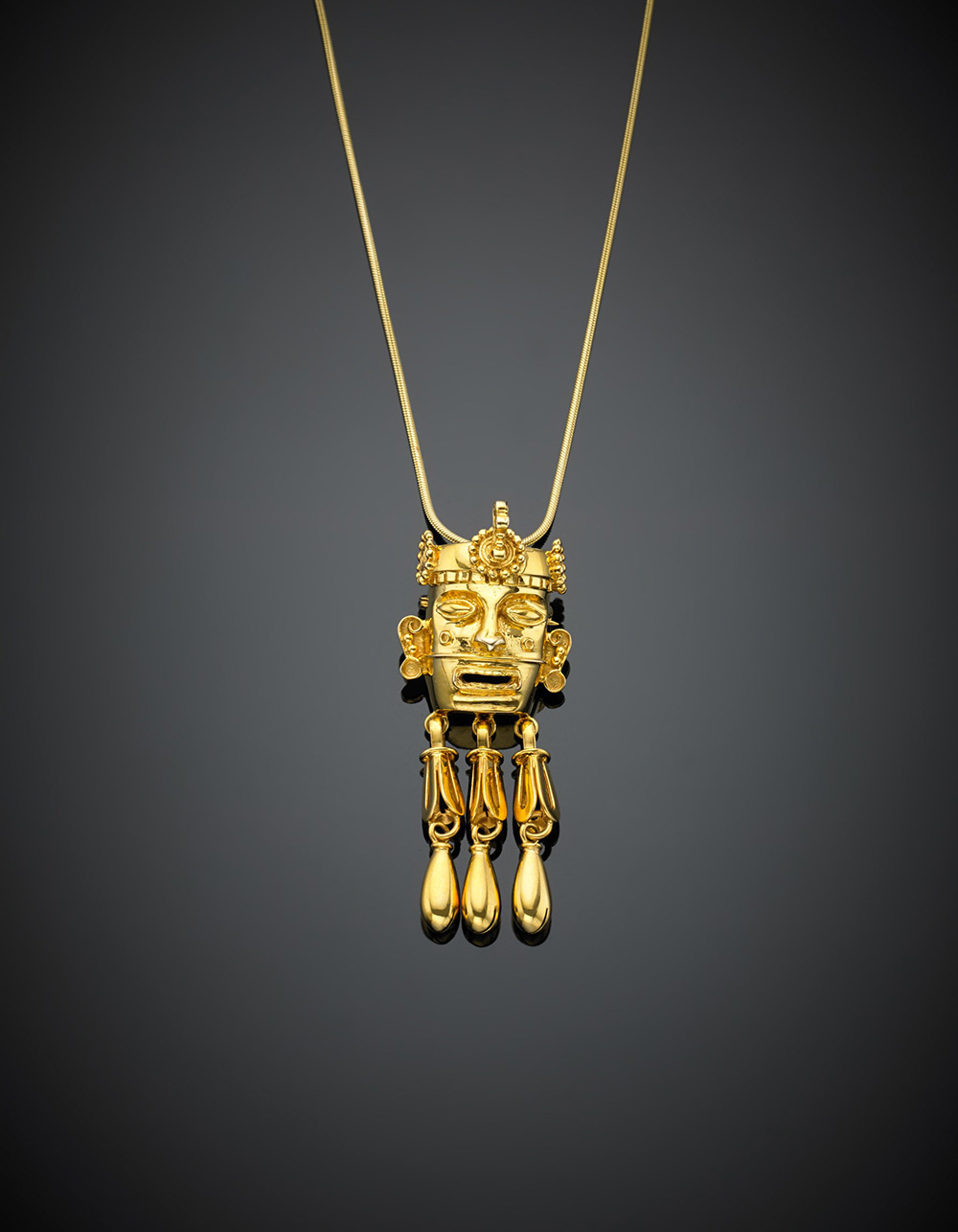 Lotto 1630 | Pendente a ricordare una figura azteca con catenina "coda di topo" in oro...