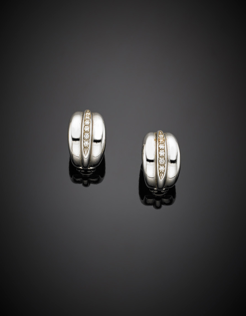 Orecchini a lobo con perno e clip in oro bianco e diamanti, g 13,56.