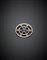 Spilla ovale in oro giallo e smalto bianco con diamanti rotondi e zaffiro...