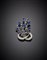 Broche in oro bianco a bouquet stilizzato, con diamanti e zaffiri ovali...