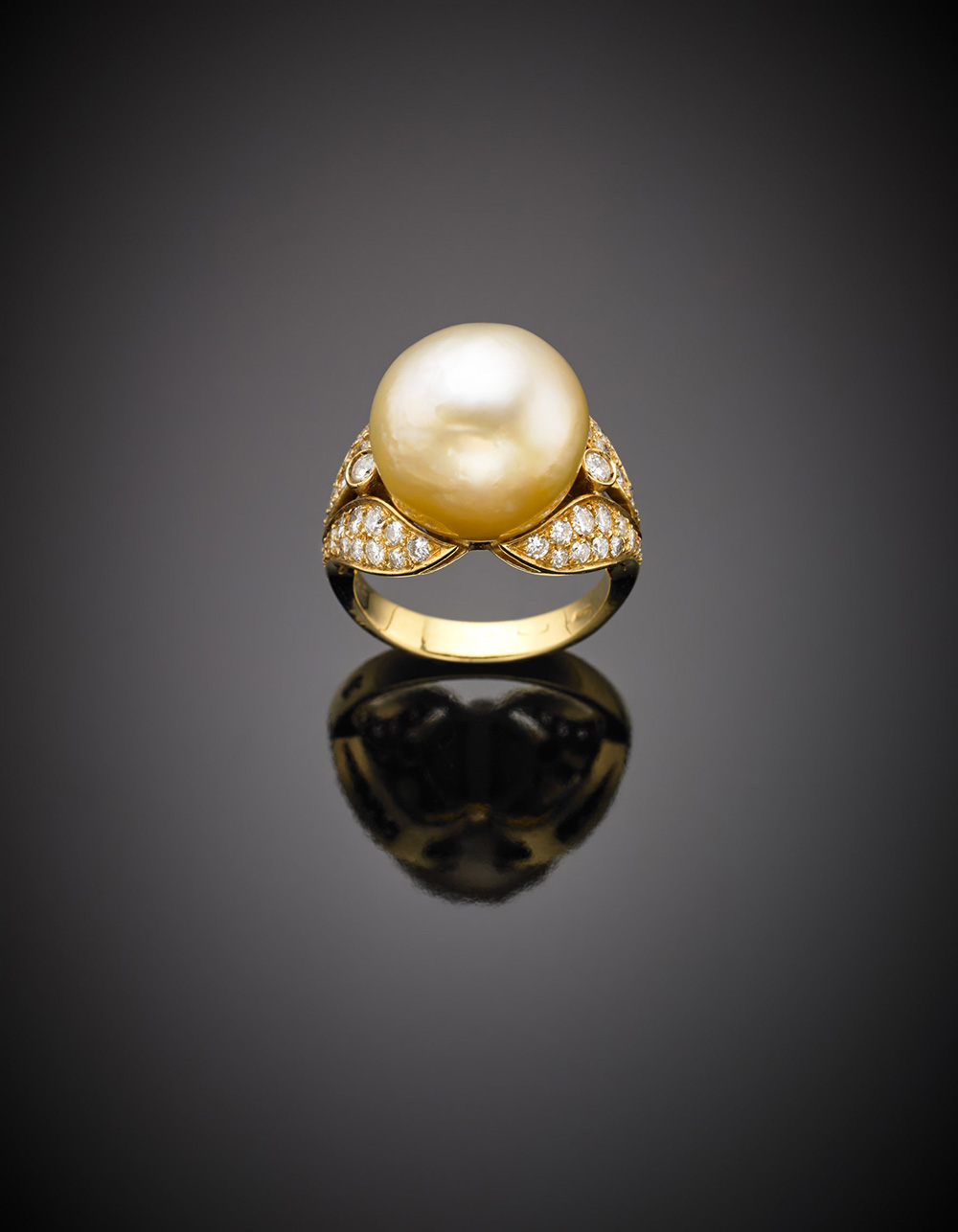 Yellow gold diamond white golden hued South Sea pearl ring, g 11.01 size 12/52.