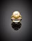 Anello in oro giallo e diamanti a tenere perla a bottone bianca con sfumatura...