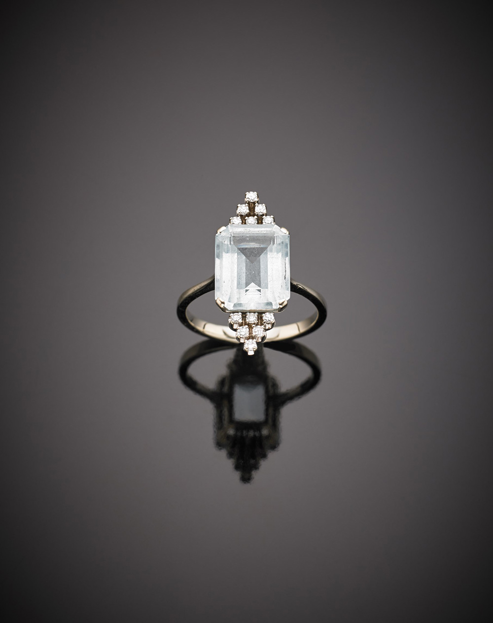 Anello in oro bianco con acquamarina ottagonale di ct. 4,75 circa g 5,40...