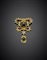 Spilla in oro giallo con micro perle e granati cabochon g 9,48, lungh. cm 6,...
