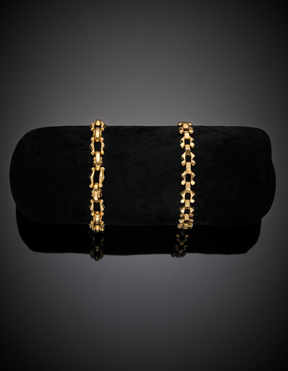 Lotto 1890 | Due bracciali modulari in oro rosso, complessivi g 23,47. Lungh. cm 18 e cm...