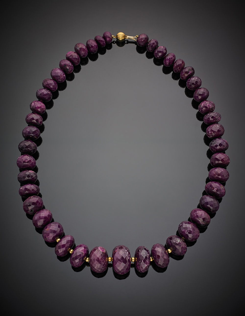 Lotto 1896 | Collana con grandi rubini a boule sfaccettate da mm 24.85 a mm 13.83 a...