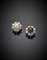 White gold diamond black and white cultured pearl cluster earclips, diamonds in all ct.5,60 circa, g 11.93.