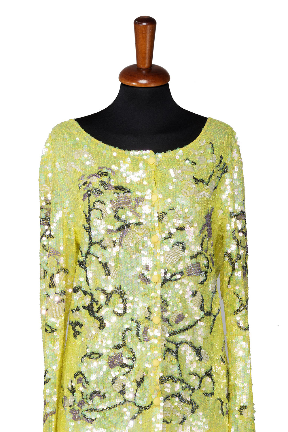 Long sleeved shirt embroidered with lemon-yellow sequins to form a floral design