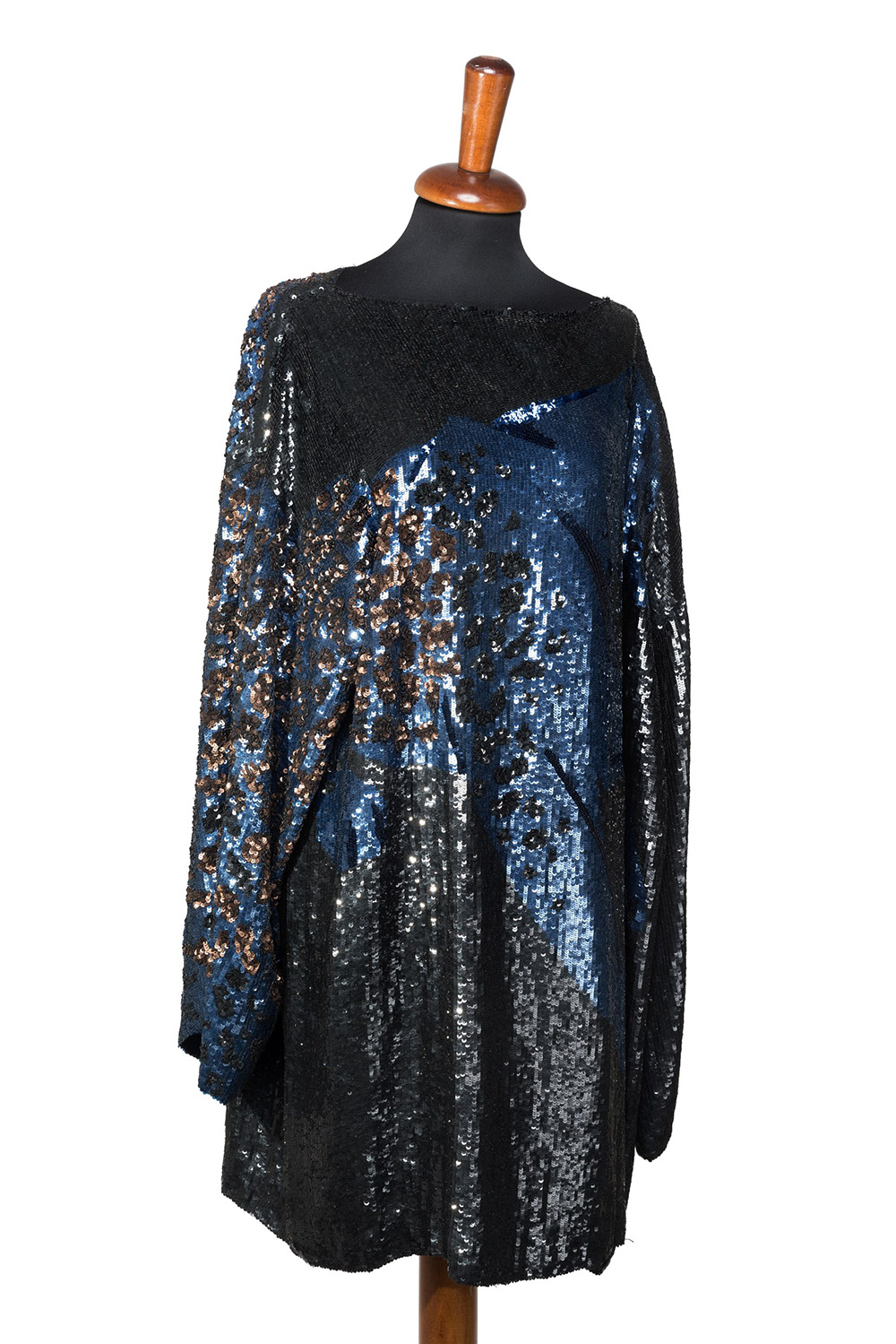 KRIZIAMaglia oversize rifinita in pailletes nere, blu e bronzo a disegnare la...