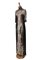 Lungo abito da sera con importante ricamo di boules e canottiglie sui toni del nero, del turchese e multicolor, spacco su retro (tg 42)