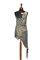 Miniabito con particolare scollo e spacco asimmetrico in seta color verde oliva e ricamo a ricordare un dragone orientale in tessuto e paillettes sui toni del verde, oro e rosso (tg 42)