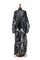 Abito lungo in garza color blu petrolio e intarsi come foglie in cotone nero