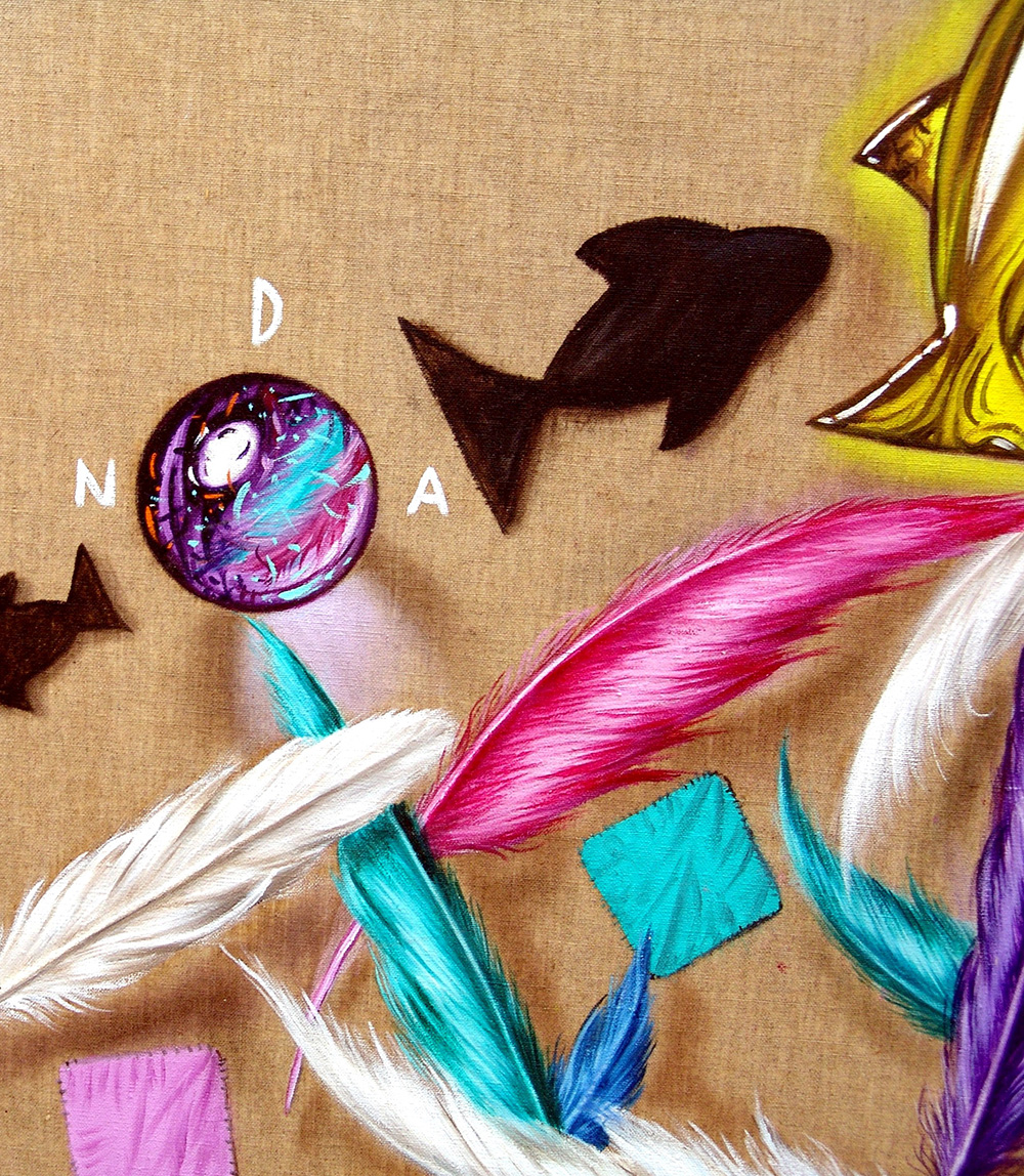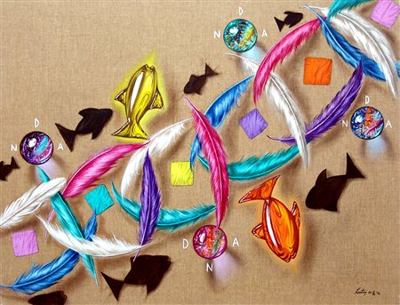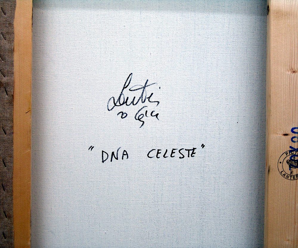 Alberto Lanteri 1955, Torino (To) - [Italia] DNA celeste olio su juta 70x90 cm 2014 firma dell'artista in basso a destra e sul retro certificato di autenticità dell'artista su fotografia
