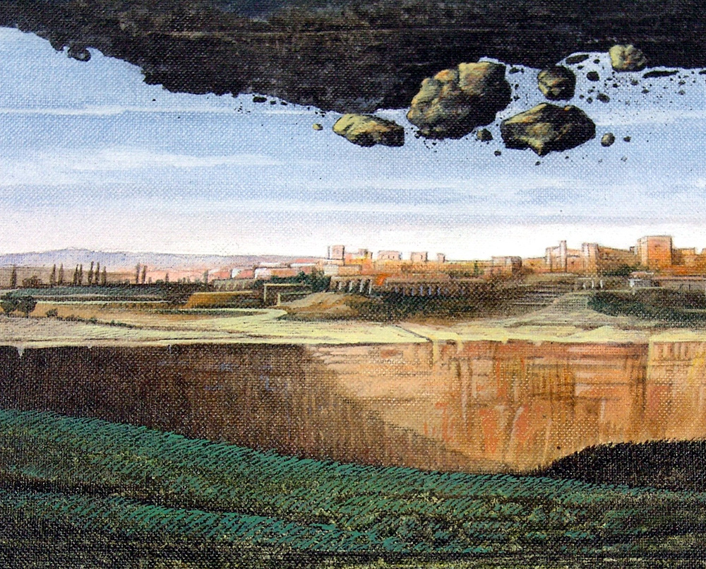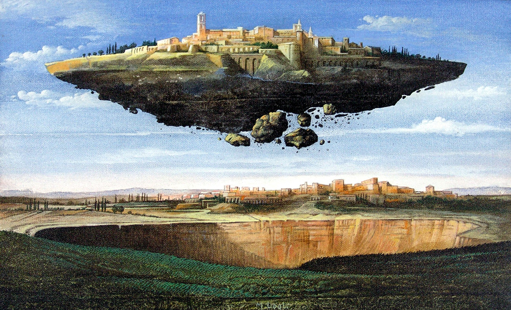 Mario Logli 1933, Urbino (Pu) - [Italia] Isola volante olio su cartone telato...