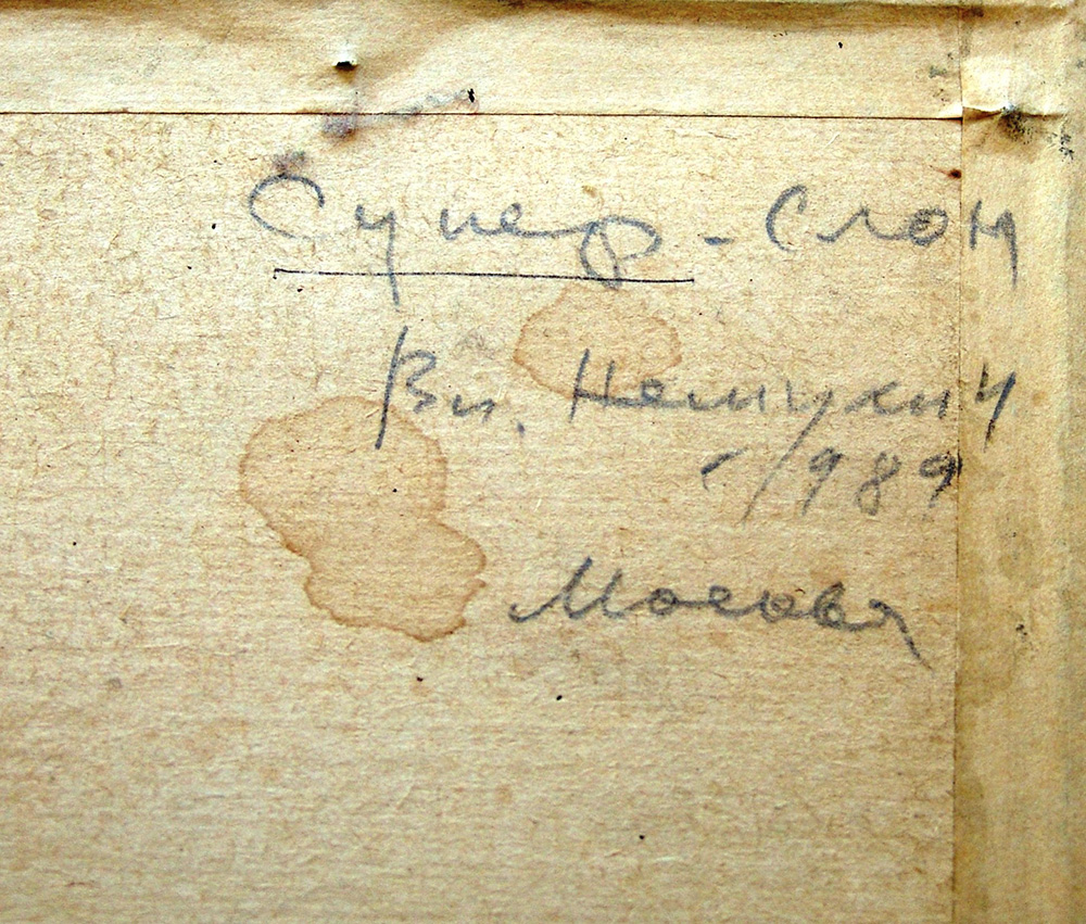 Vladimir Nemukhin 1925, Kaluga - 2016, Mosca - [Russia] Sloan tecnica mista su carta 29x23 cm 1989 firma dell’artista in basso e sul retro; opera con cornice certificato di autenticità Picenum