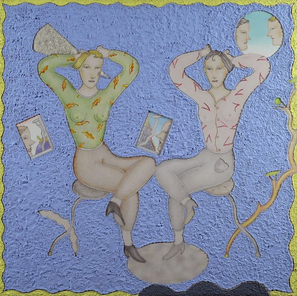 Luca Alinari (Firenze, 1943) Figure Tecnica mista su tela riportata su tavola, cm. 100x100 Autentica dell’autore su foto.