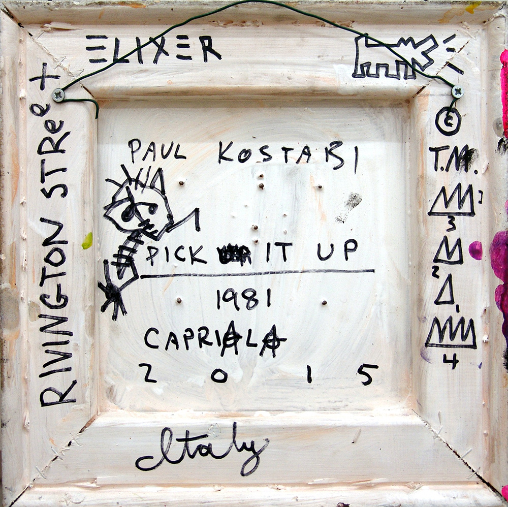 Paul Kostabi 1962, Whittier (California) - [USA] Pick it up tecnica mista su tavola 30x30 cm 1981 firma dell’artista in basso al centro e sul retro certificato di autenticità firmato dall’artista