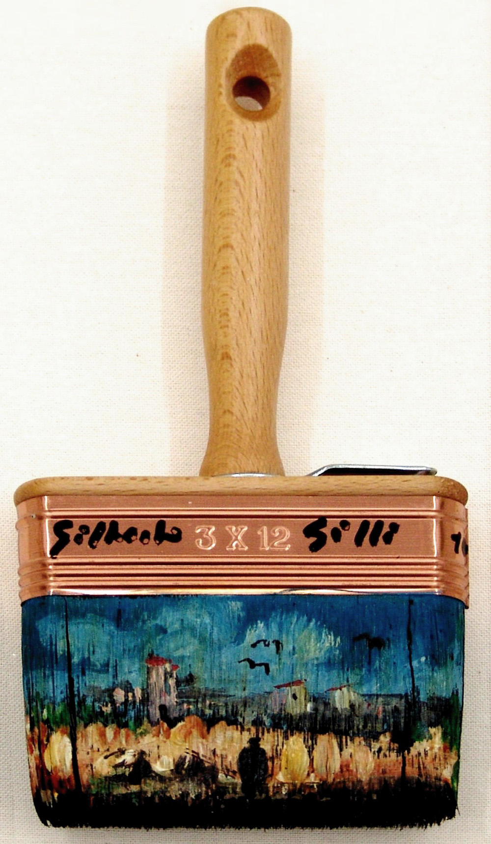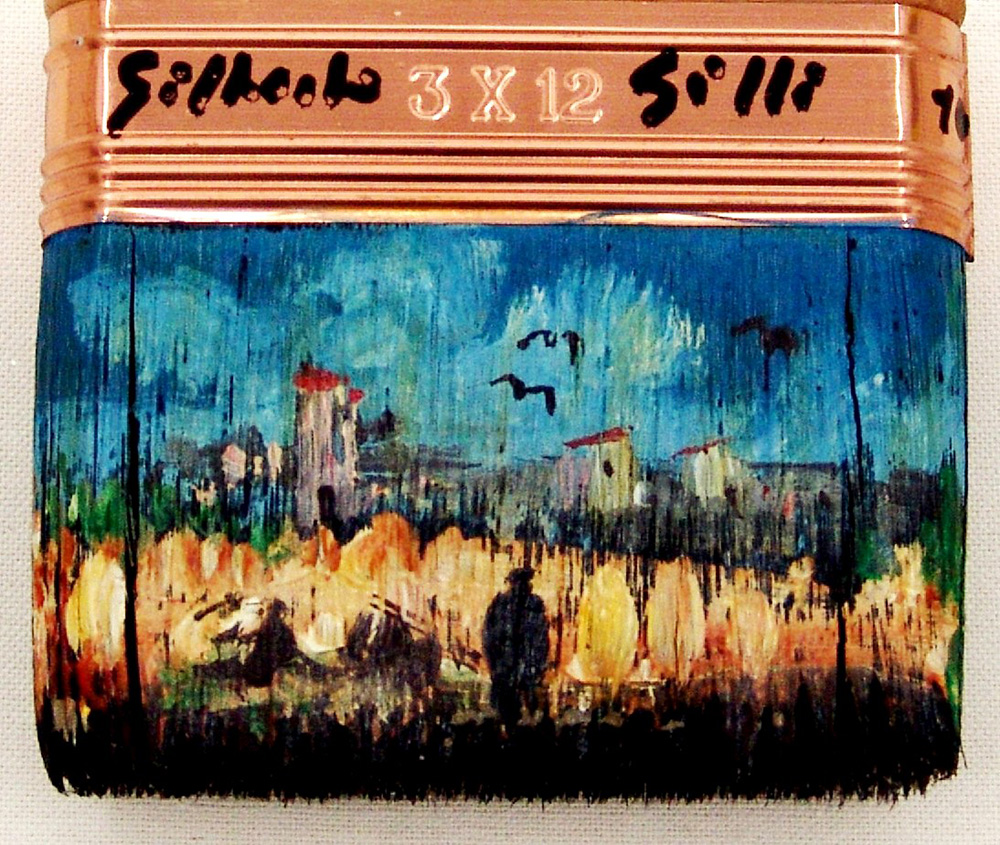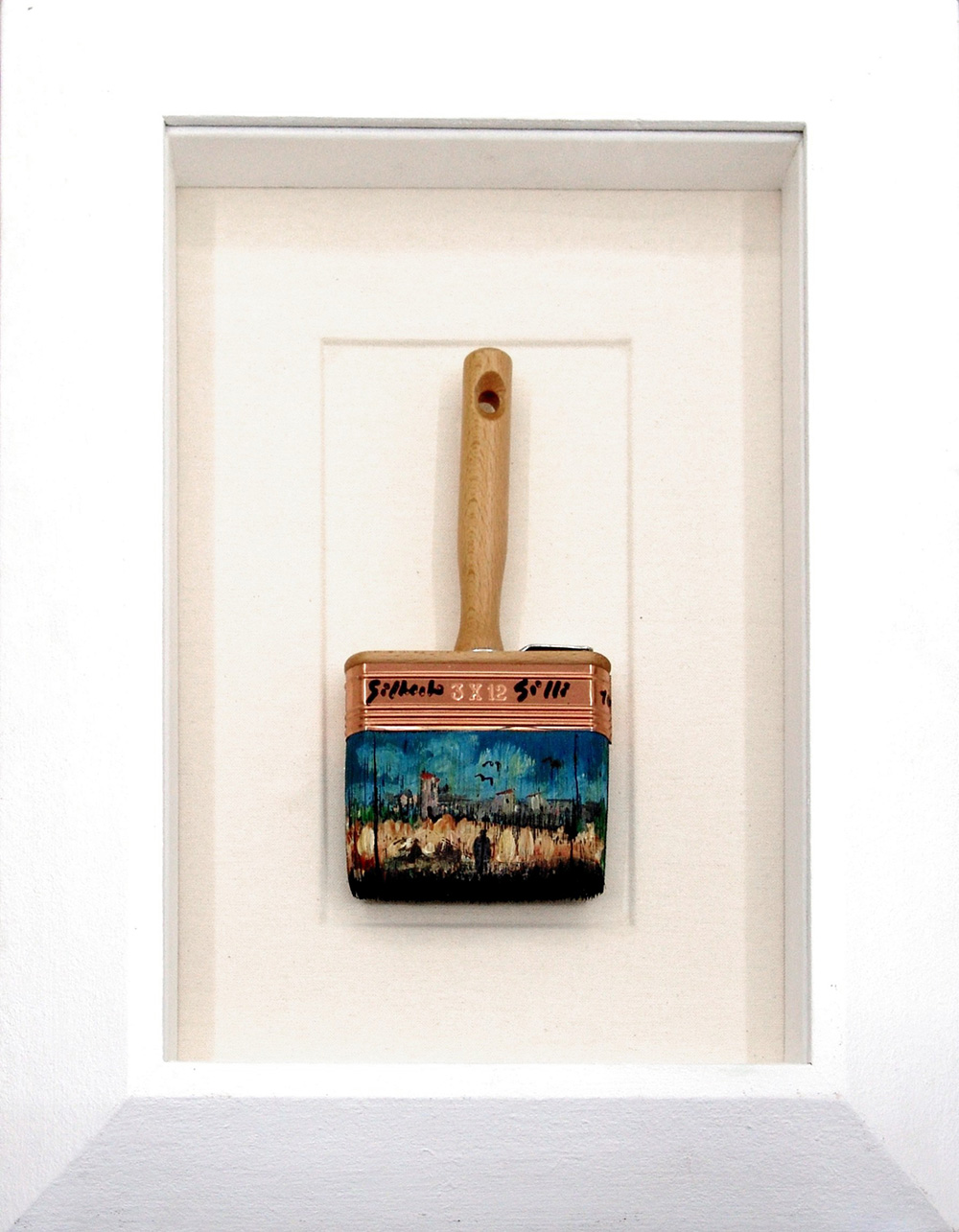 Gilberto Grilli 1957, Mercatello sul Metauro (Pu) - [Italia] senza titolo olio su setole di pennello 24x12x5 cm firma dell'artista sul pennello; opera con cornice certificato di autenticità firmato dall'artista