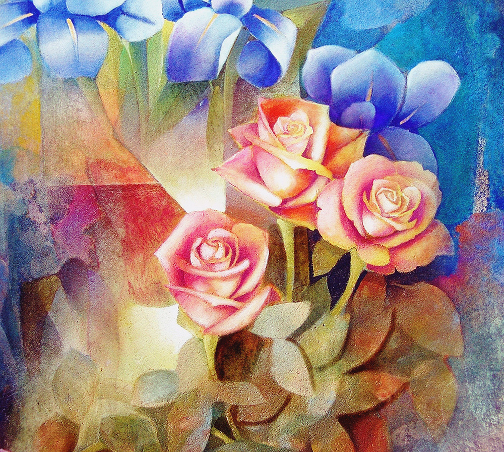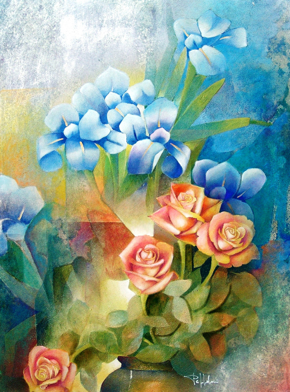 Alvaro Peppoloni 1951, Spello (Pg) - [Italia] Spoleto floreale retouche su tavola 60x40 cm 2015 firma dell’artista in basso a destra e sul retro certificato di autenticità firmato dall'artista