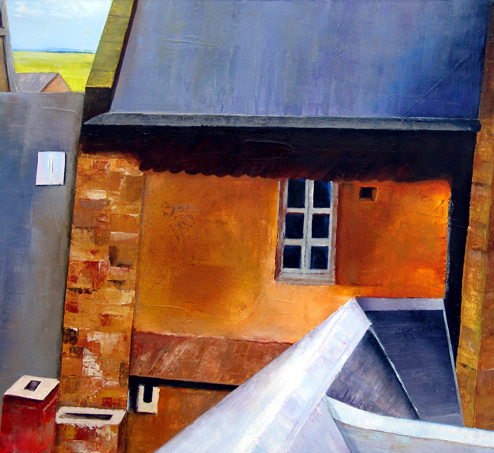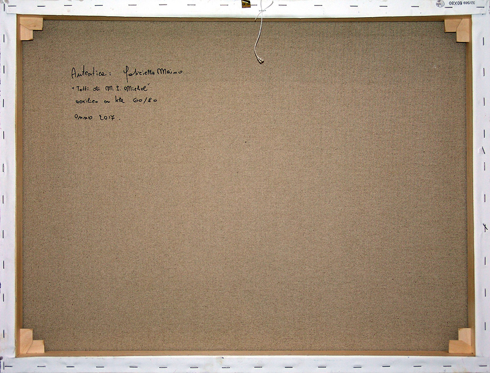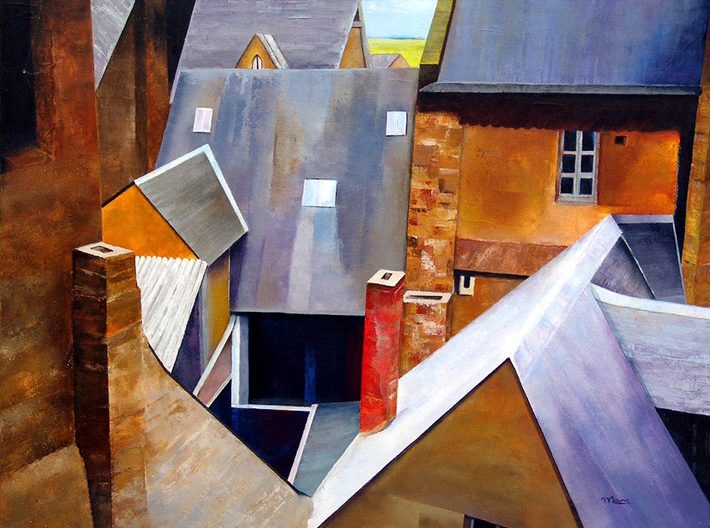Gabriella Maino 1942, Verbania (Vb) - [Italia] Tetti di Mont S. Michel acrilico su tela 60x80 cm 2017 firma dell'artista in basso a destra e sul retro certificato di autenticità firmato dall’artista
