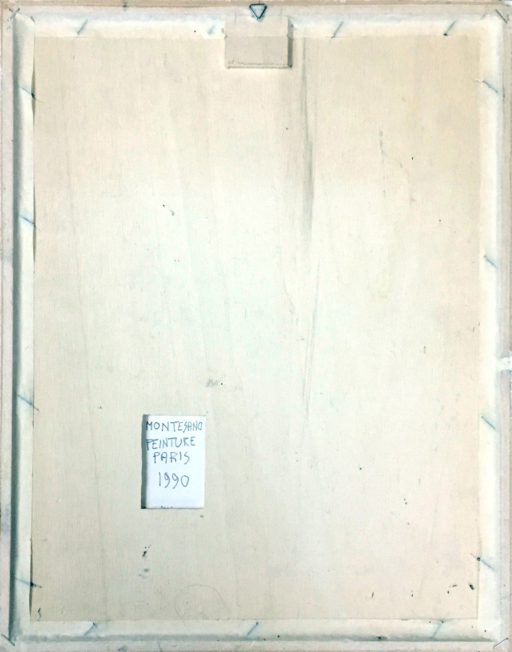 Gian Marco Montesano 1949, Torino (To) - [Italia] senza titolo olio su tavola 30x20 cm 1990 firma dell’artista sul retro; opera con cornice certificato di autenticità dell’artista su fotografia