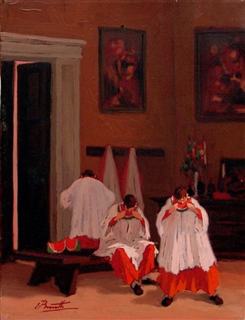 Enzo Bonetti 1916, Fano (Pu) - 1987, Pesaro (Pu) - [Italia] senza titolo olio su tela 40x30 cm firma dell’artista in basso a sinistra e sul retro certificato di autenticità Picenum