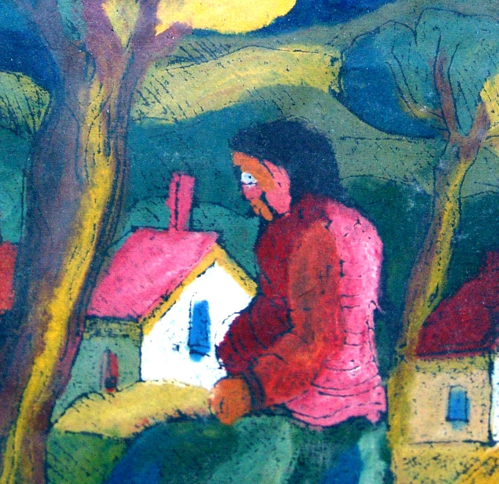 Giuseppe Serafini 1915, Montelupo Fiorentino (Fi) - 1987, Montelupo Fiorentino (Fi) - [Italia] senza titolo tecnica mista su carta 30x20 cm firma dell’artista in basso al centro; opera con cornice certificato di autenticità Picenum
