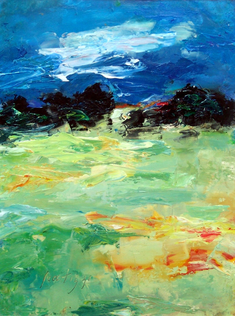 Sergio Scatizzi 1918, Gragnano (Lu) - 2009, Firenze (Fi) - [Italia] Paesaggio olio su tavola 50x35 cm c. 2000 firma dell’artista in basso a sinistra; opera con cornice certificato di autenticità firmato dall'artista