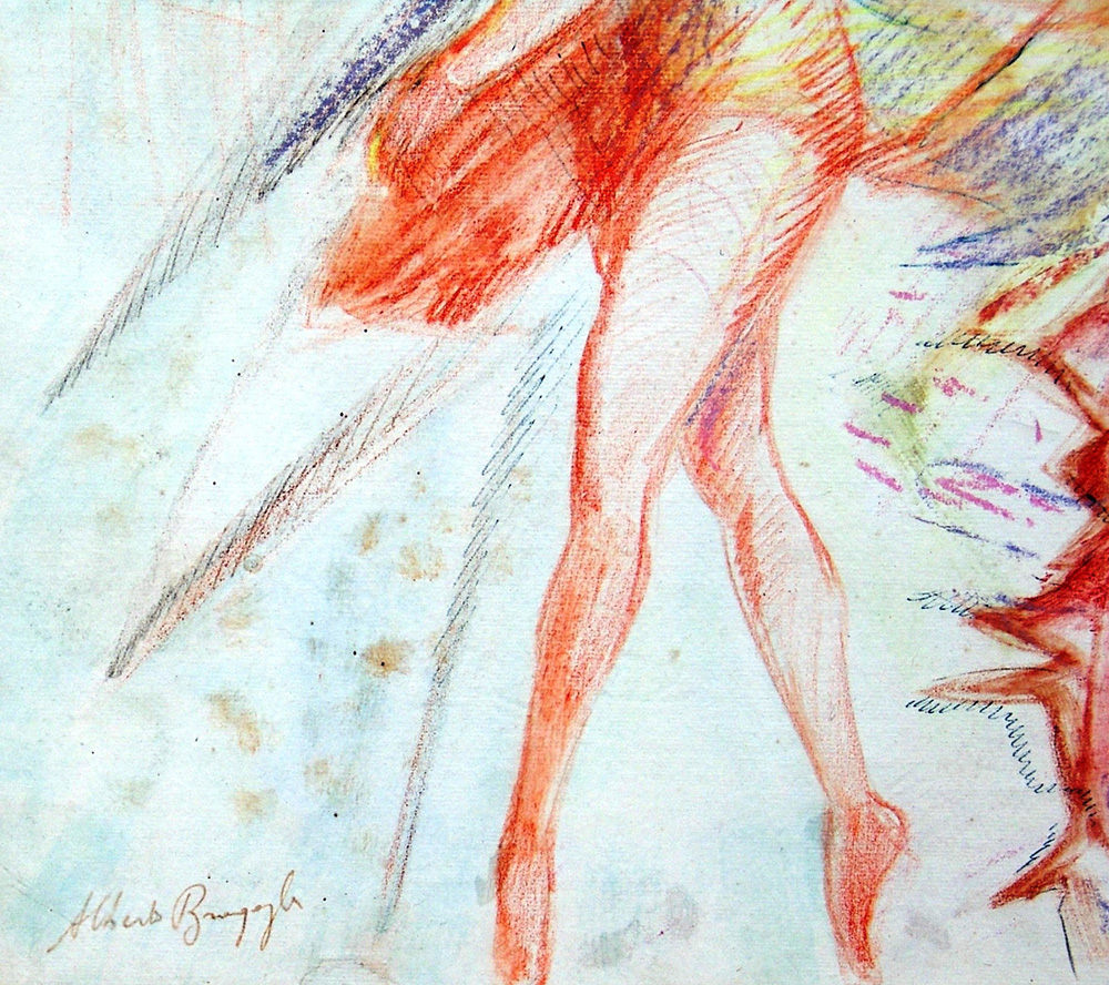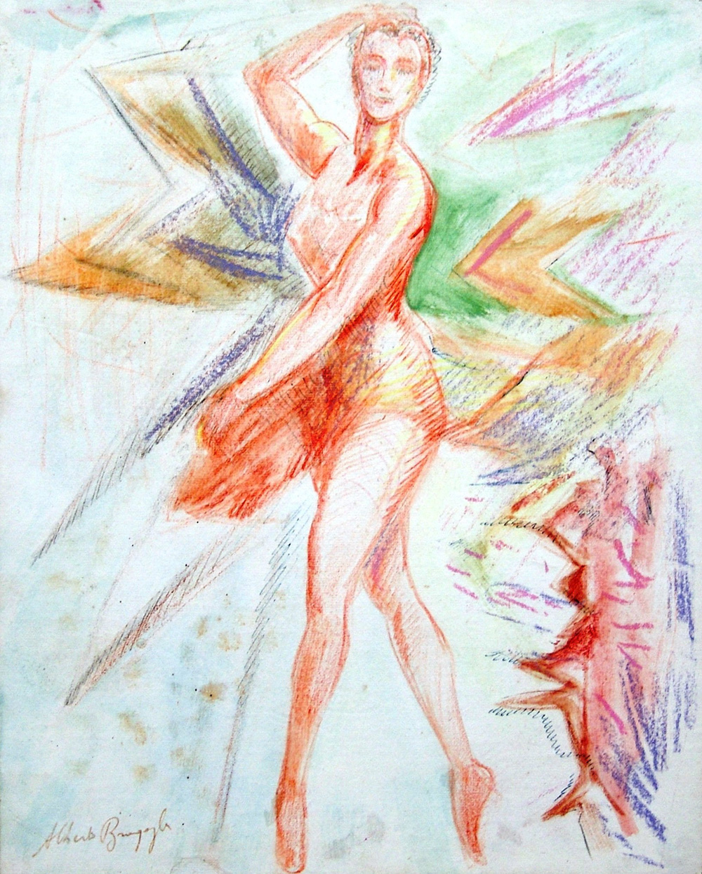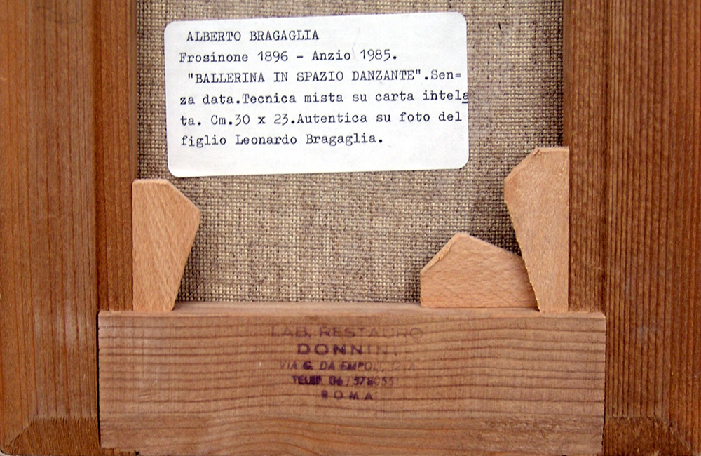 Alberto Bragaglia 1896, Frosinone (Fr) - 1985, Anzio (Rm) - [Italia] Ballerina in spazio danzante tecnica mista su carta applicata su tela 30x23 cm firma dell’artista in basso a sinistra certificato di autenticità Picenum