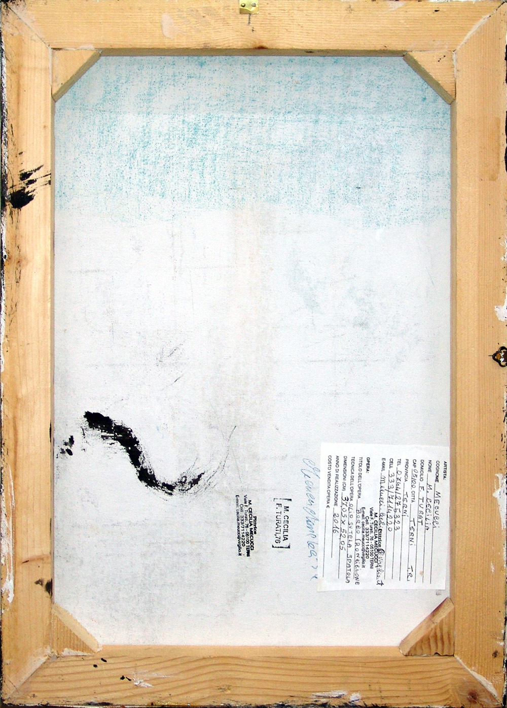 firma dell'artista in basso a destra e sul retro