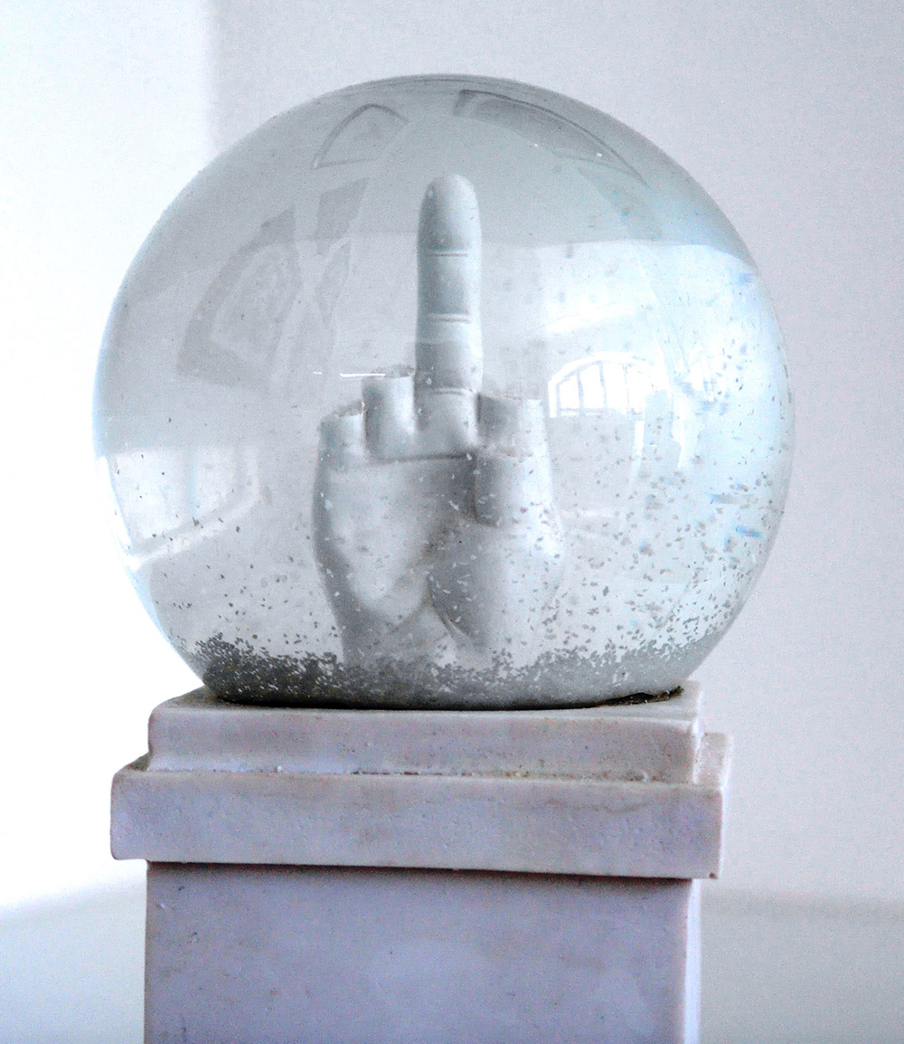 Maurizio Cattelan 1960, Padova (Pd) - [Italia] L.O.V.E. snowball scultura in resina 28x14x14 cm 2014 tiratura 2000 pezzi; marchio Seletti sul fondo certificato di autenticità Picenum