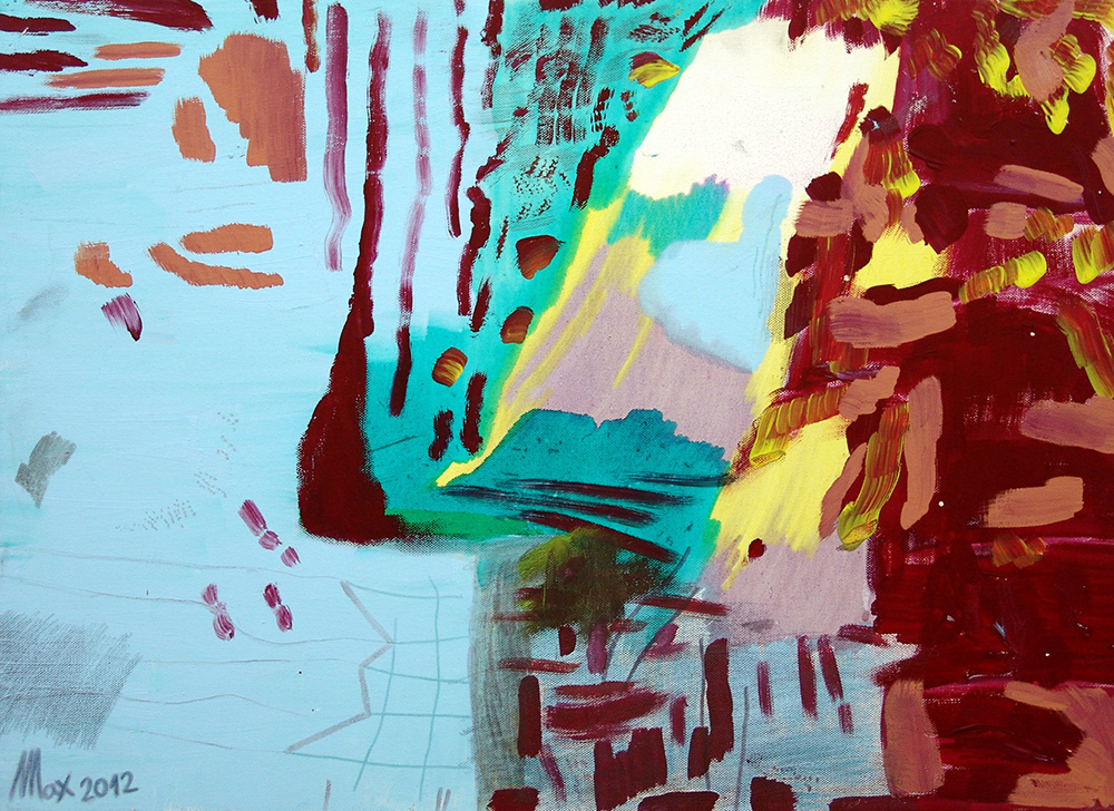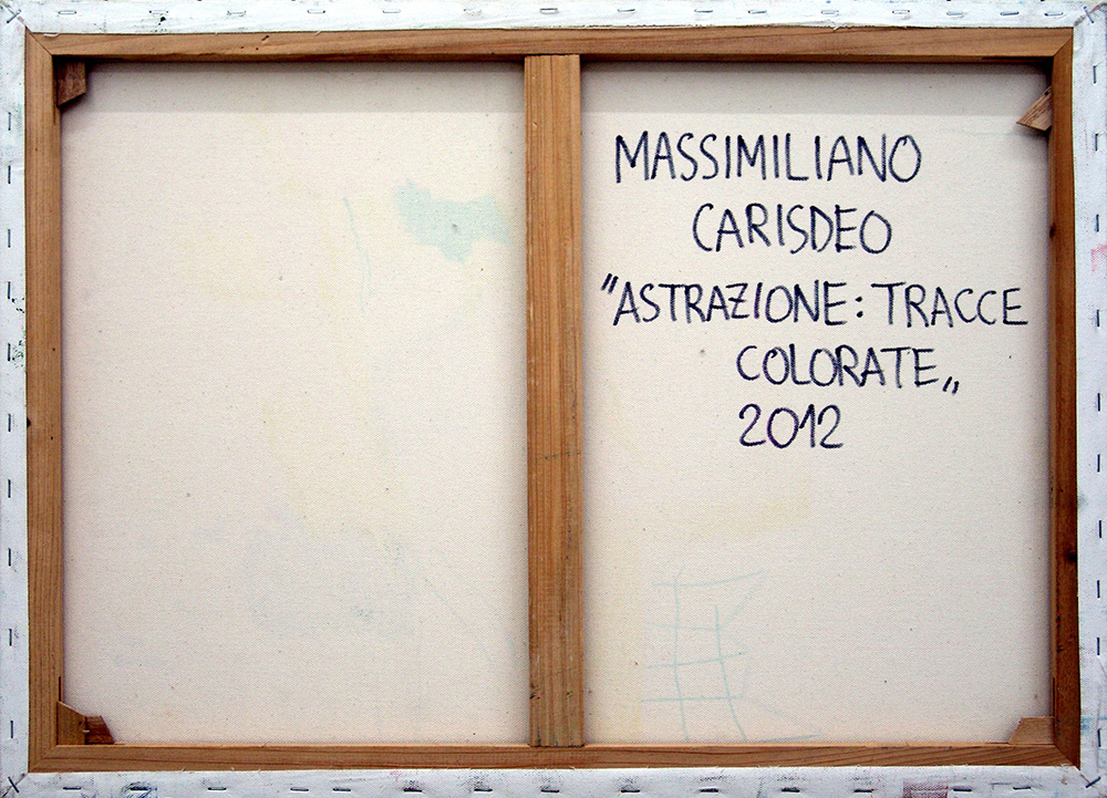 Massimiliano Carisdeo 1968, Ancona (An) - [Italia] Astrazione: tracce colorate tecnica mista su tela 50x70 cm 2012 firma dell'artista in basso a sinistra e sul retro certificato di autenticità Picenum