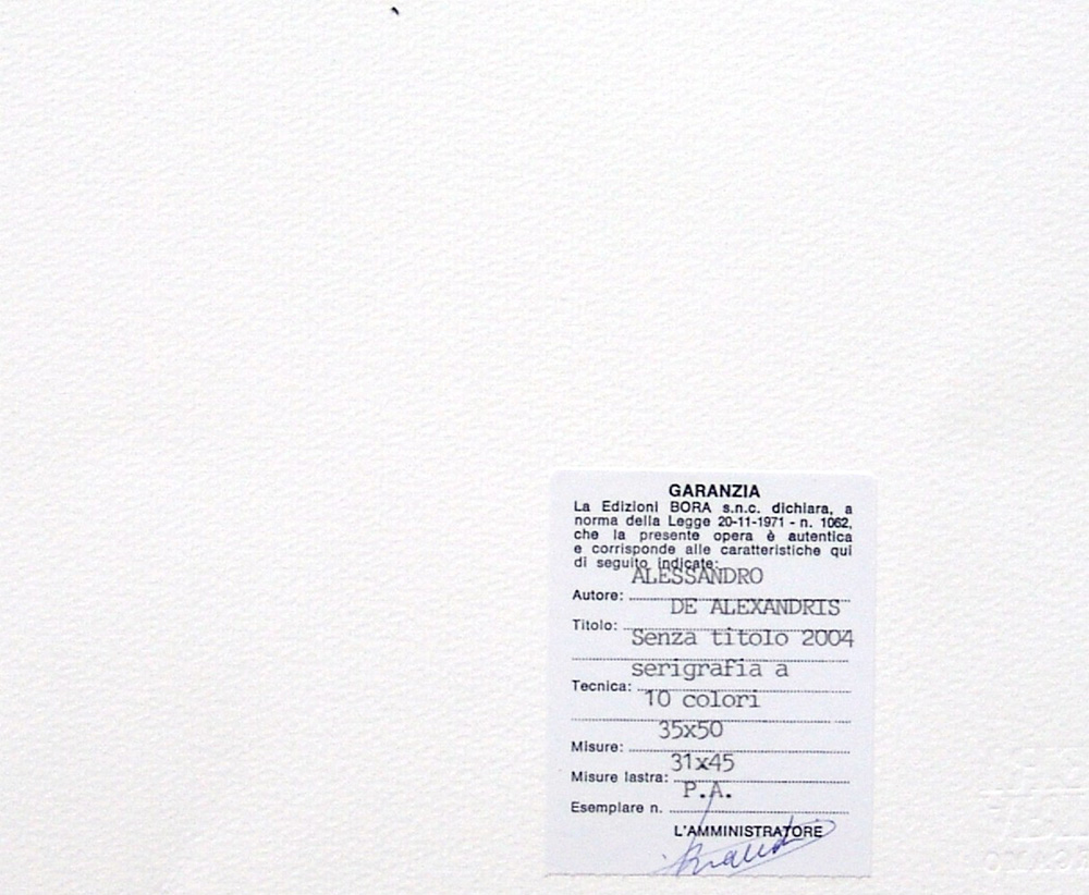 Alessandro De Alexandris 1939, Torino (To) - [Italia] senza titolo serigrafia a 10 colori 50x35 cm 2004 p.d.a.; firma dell’artista in basso al centro certificato Edizioni Bora sul retro