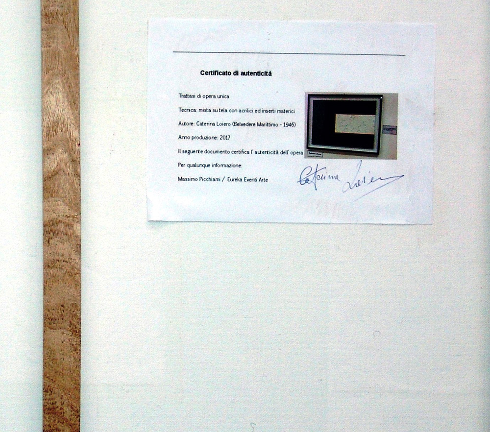 certificato di autenticità firmato dall'artista