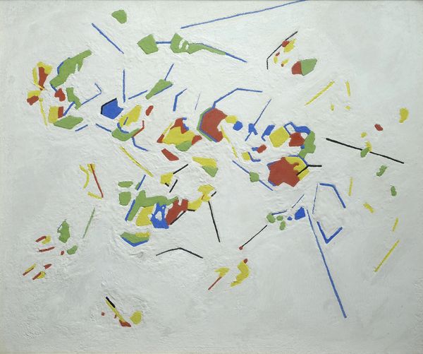 Fernando Melani (Pistoia, 1907 - 1985) Astratto, 1954 Olio su tavola, cm. 55x63,3 Sul verso: sigla, data e numero "684".