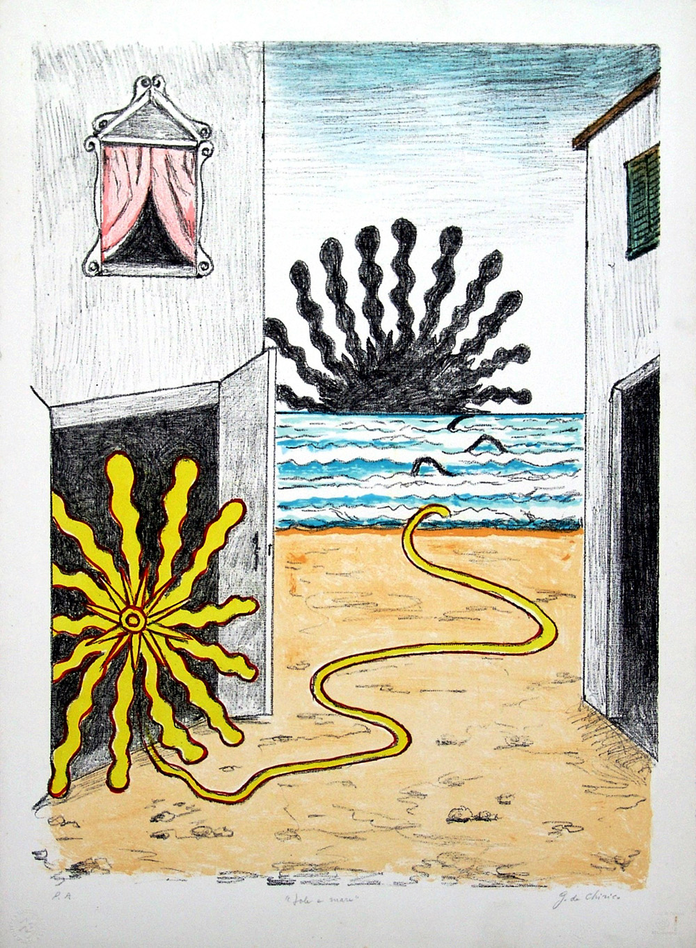 Giorgio De Chirico 1888, Volo (Grecia) - 1978, Roma (Rm) - [Italia] Sole e mare litografia 70x50 cm p.d.a.; firma dell'artista in basso a destra; timbro Matteo Maglia in basso a sinistra; timbro Alberto Caprini in basso a destra certificato di autenticità Picenum