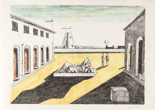 Giorgio De Chirico, PIAZZA D'ITALIA Litografia a 5 colori, cm 50,5x70Firmato...