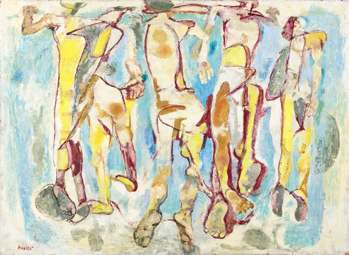 Anonimo , TUFFATORI Olio su tavola, cm 73x100Firma in basso a sinistra "Pirandello"Opera accompagnata da certificazione di autenticità della galleria "La Vetrata, Roma", su foto.Opera pubblicata sul catalogo della mostra "Quattro Maestri contemporanei, Cantatore, Gentilini, Guttuso, Pirandello", 18 Ottobre - 12 Novembre 1975