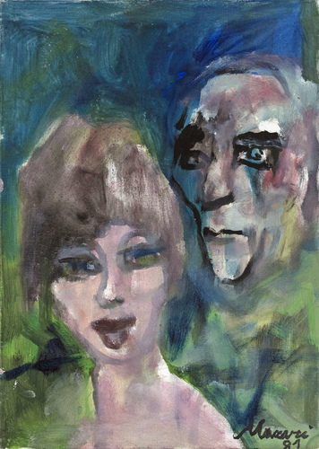 Mino Maccari, FIGURE Olio su cartone telato, cm 35x25Opera eseguita nel 1981Firmato e datato in basso a destra "Maccari '81"Certificato di autenticità dell'archivio Mino MaccariAutentica dell'artista su fotoOpera sprovvista di cornice