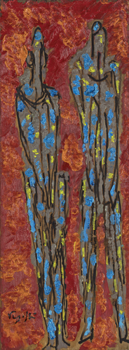 Antonio Vangelli, DUE FIGURE Olio su tavola, cm 43x16Firmato sul fronte...