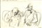 Pittore del XX secolo , UOMINI LEGGONO IL GIORNALE Disegno a matita su carta,...
