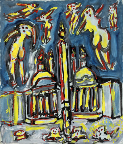 Mario Martini, PIAZZA DEL POPOLO Olio su tela, cm 70x60Firma sul fronte e retro