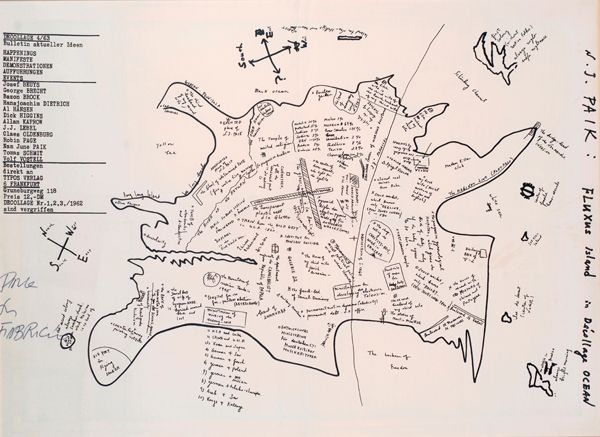 Nam June Paik (Seul, 1932 - Miami, 2006) Fluxus Island in Décollage Ocean,...