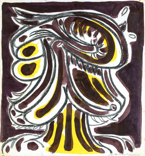 Arturo Carmassi, ARGONAUTA Tecnica mista su carta, cm 29,3x31,5. Oera eseguita nel 1974. Opera esposta e pubblicata sul catalogo della mostra "Carmassi, Tempere, Galleria Ca' D'Oro, 1976, Roma". Opera proveniente dalla collezione Porcella, Roma