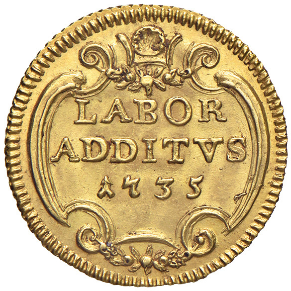 Clemente XII (1730-1740).Scudo d'oro 1735/VI, con al R/ LABOR/ADDITUS....