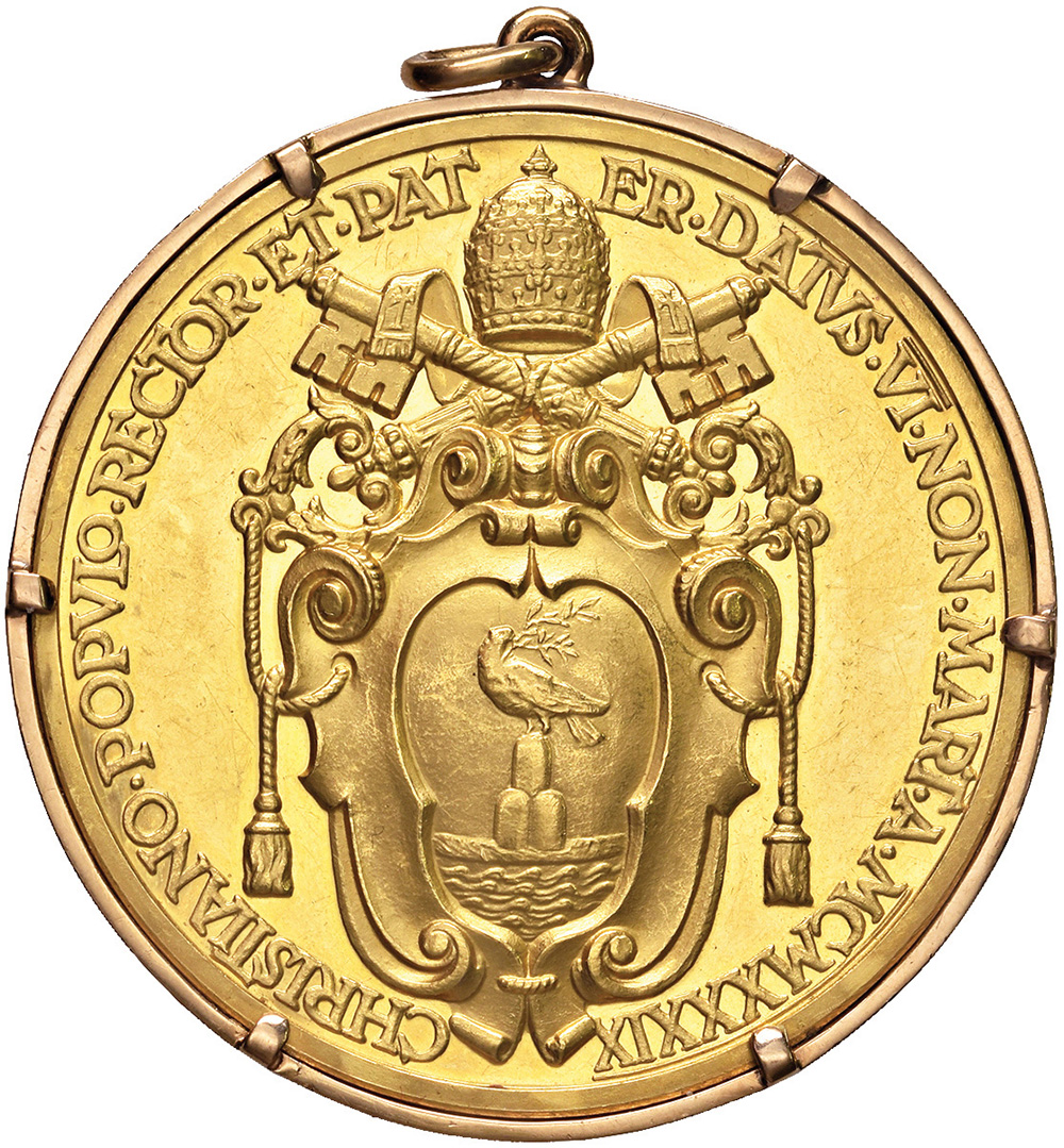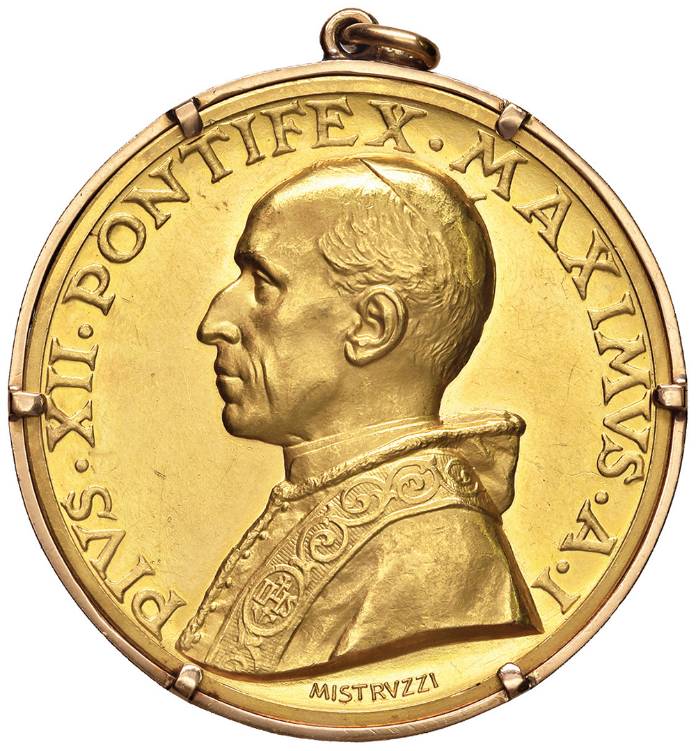 ROMA. Pio XII (1939-1958)Medaglia in oro anno I, SPL. Incastonata in anello...