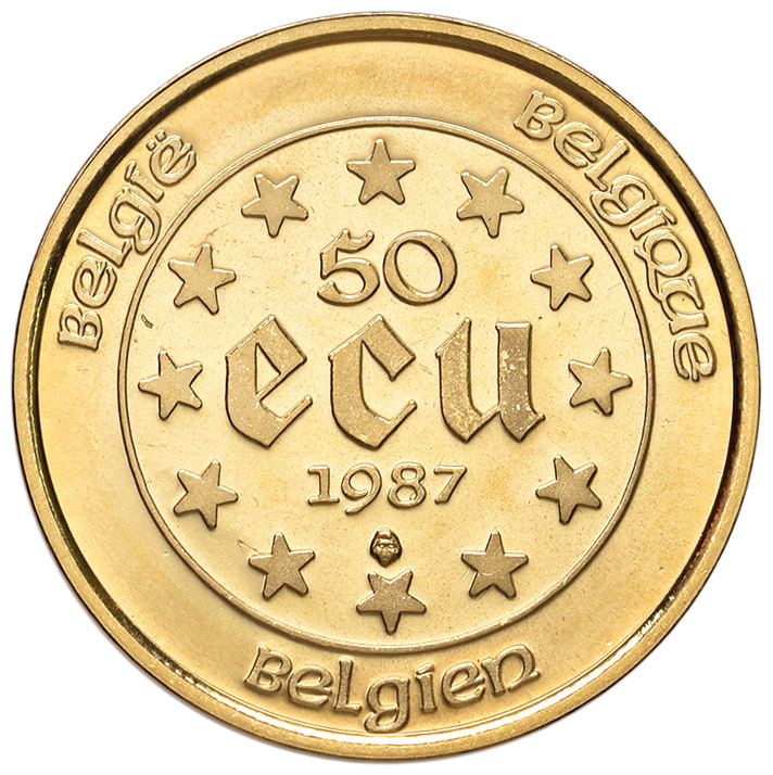 BELGIO50 ecu 1987 in oro.FDC. In astuccio.