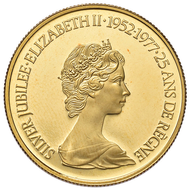100 dollari 1977 in oro per i 25 anni del regno di Elisabetta II.