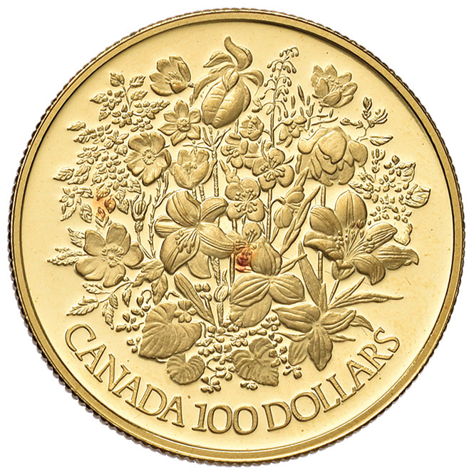 CANADA100 dollari 1977 in oro per i 25 anni del regno di Elisabetta II.PROOF....